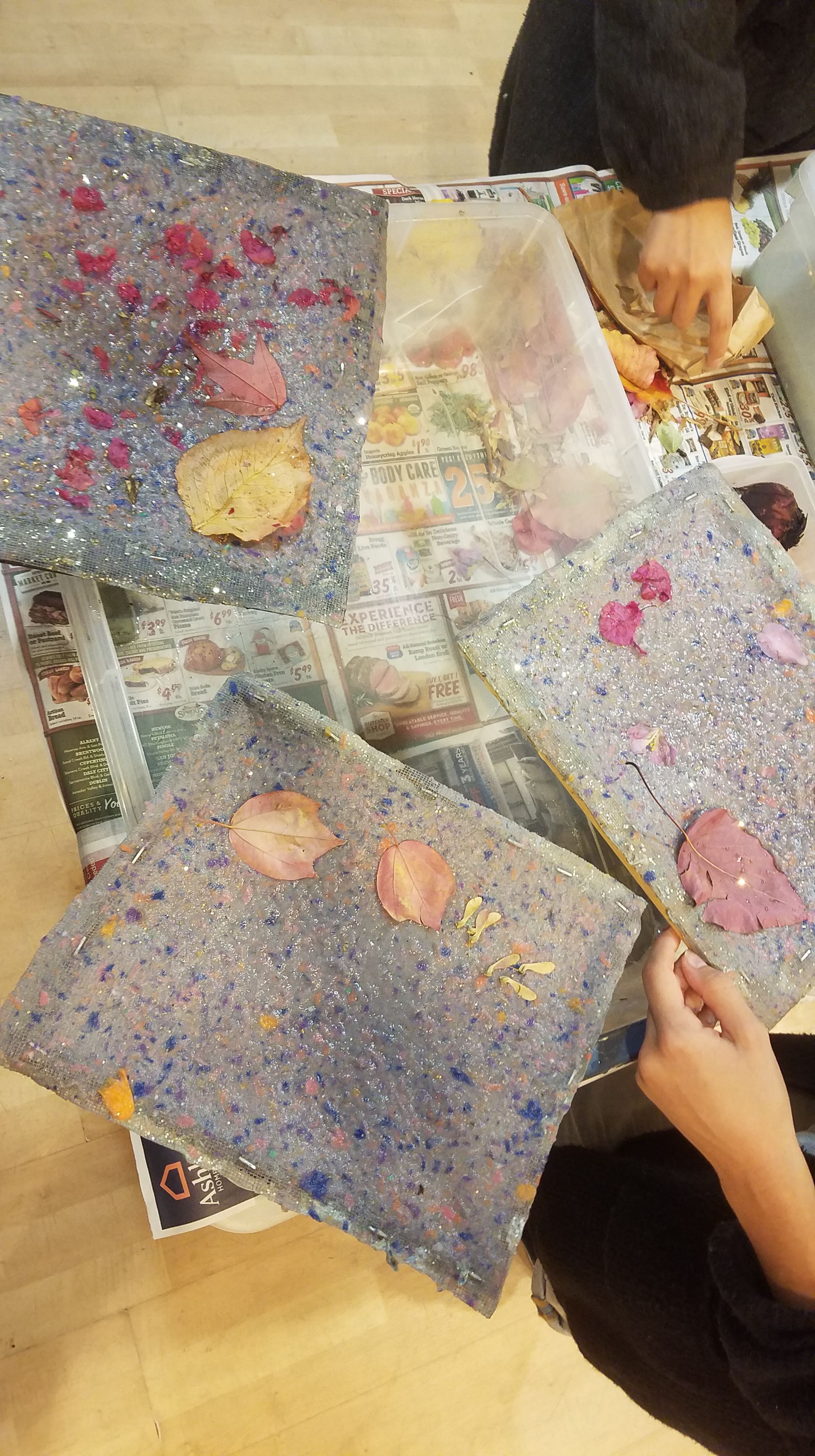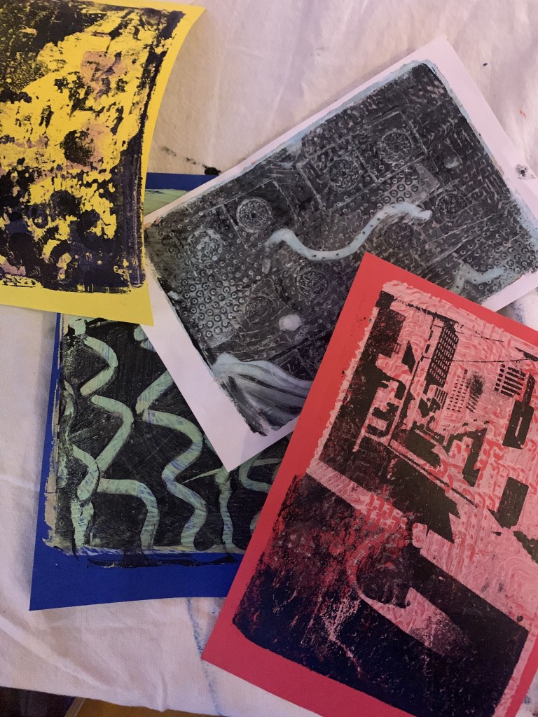 - Examples: gelli printing, DIY screenprinting, DIY cat toys, paper making